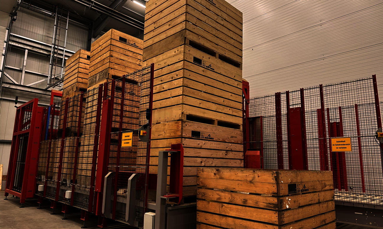 Die moderne Annahmetechnik ermöglicht es Landwirten, die Kartoffeln flexibel anzuliefern. Die großvolumige Annahme schafft ausreichend Puffer, um die Transportkapazitäten effektiv zu nutzen. Spiralwalzen sorgen dafür, dass erdfeuchte Knollen von grober Erde befreit werden. Danach erfolgt eine schonende Befüllung in Holz-Großkisten durch einen vollautomatischen Kistenfüller oder eine lose Beladung auf Bandwagen, um danach im Packbetrieb weiterverarbeitet zuwerden.