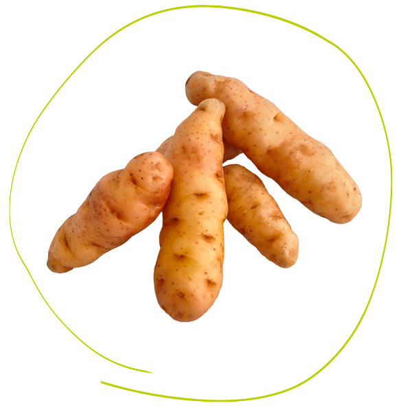 Die "französische Spargelkartoffel" ist eine gelbe, festkochende Fingerkartoffel, sehr ertragreich und wegen ihrer Größe und Form als "Spargelkartoffel" bekannt.