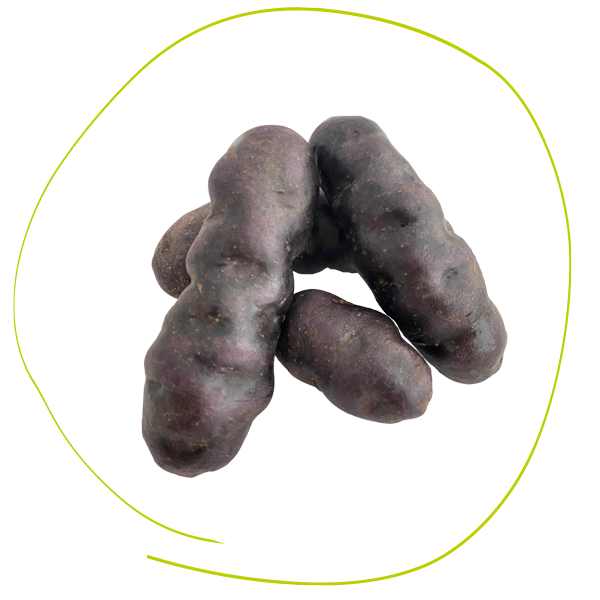Sie ist eine seltene, edle Kartoffelsorte mit lila-blauem Fleisch und schwarz-blauer Schale. Sie hat einen exzellenten Geschmack und eine lange Haltbarkeit.