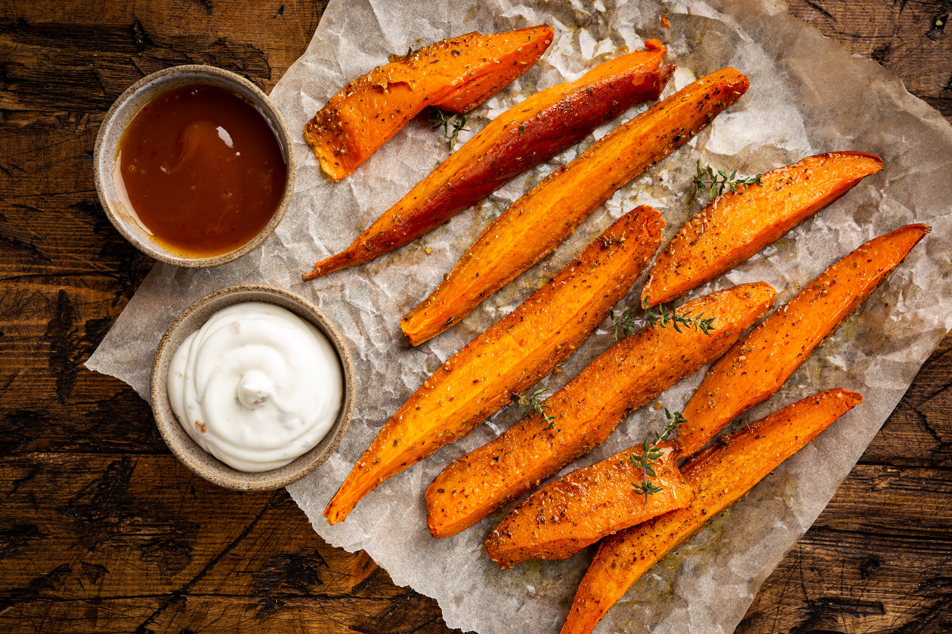 Süßkartoffeln enthalten kein Fett und bestehen zu 80% aus Wasser. Sie sind voll wichtiger Nährstoffe und weisen weniger als ein Viertel der Kohlenhydrate von beispielsweise Reis auf. Sie enthalten weniger Kalorien und mehr Ballaststoffe als normale Kartoffeln und sind reich an Vitaminen und Mineralien, darunter Eisen, Selen und Kalzium. Gleichzeitig sind sie auch eine Quelle von Vitamin B und C. Sie enthalten Beta-Carotin - einen Antioxidans, das der Körper in Vitamin A umwandelt.