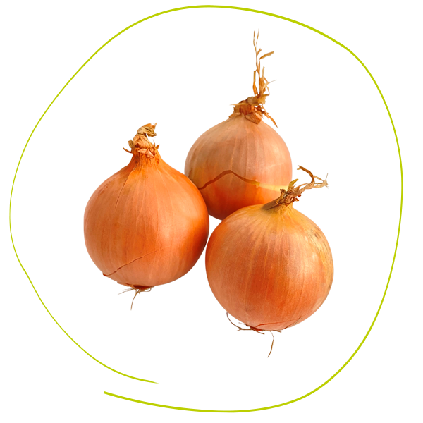 Oft auch gelbe Zwiebel genannt, ist sie die wohl am meisten gezüchtete Zwiebel. Sie verdankt ihren Namen der goldgelben Schale. An der Innenseite ist sie weiß. Vom Geschmack her stark kann sie auf verschiedene Weise verwendet werden – roh, gekocht, geschmort und gebraten. Gelbe Zwiebeln sind das ganze Jahr über erhältlich.
